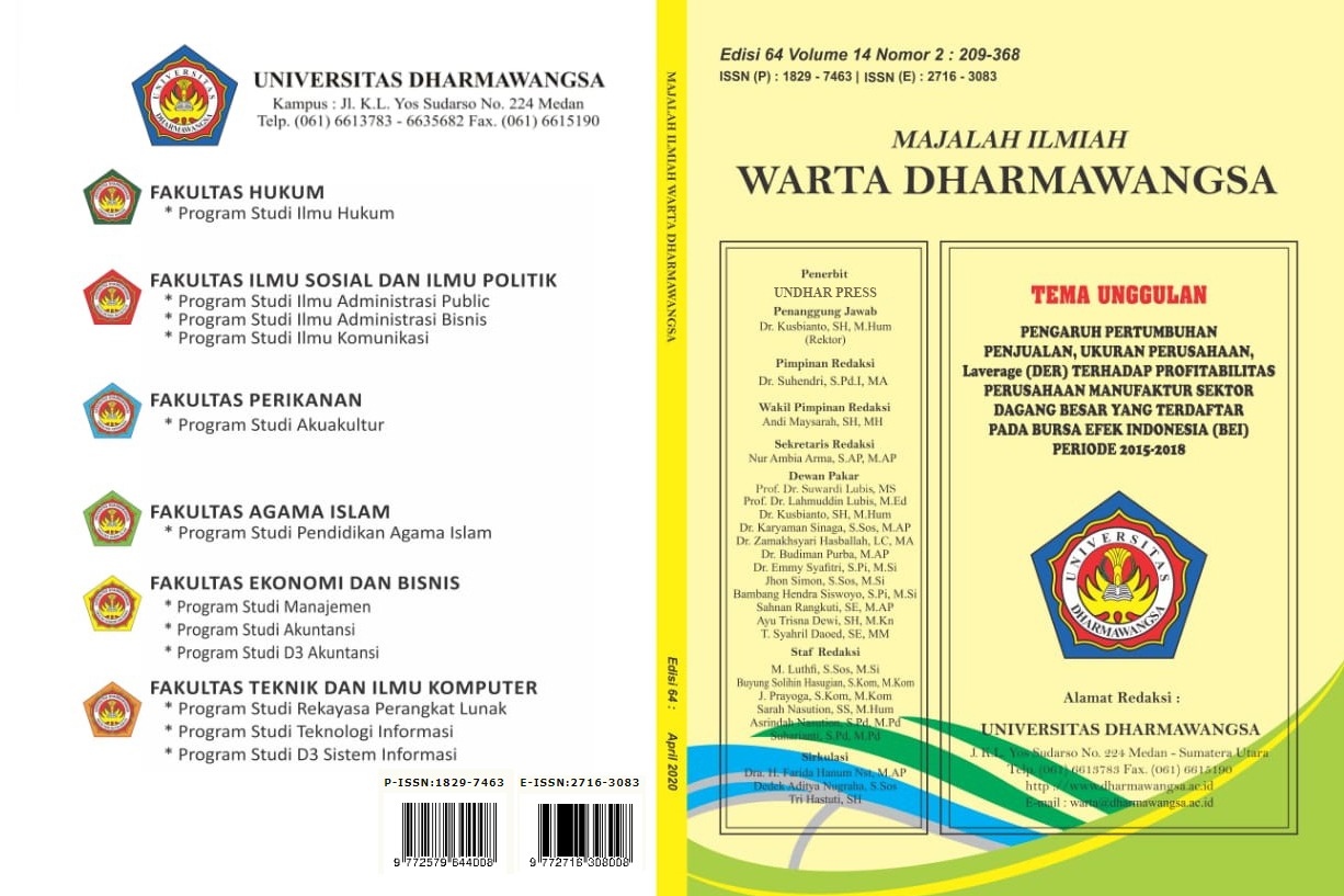 | Warta Dharmawangsa | Vol 14, No 3 (2020) | Halaman Depan | Details PDF |